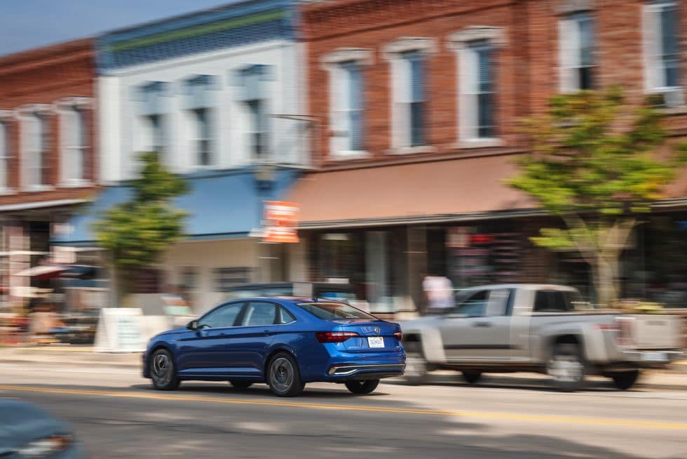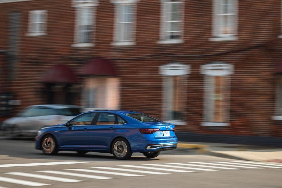 При керуванні на малих швидкостях цей новий все ще невеликий двигун сильно залежить від турбонагнітача, з невеликим відставанням у початковій реакції. Тим не менш, натисніть на педаль акселератора під час руху, і Jetta легко спрямує вперед, прискорюючи авто до 100 км/год за 7,1 секунд — на 0,6 секунд швидше, ніж у торішнього автомобіля.